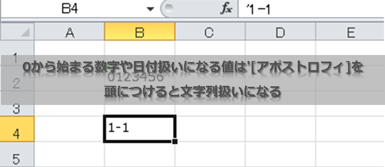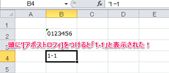 一番手軽な方法としては、「入力データの頭に'[アポストロフィ]を付ける」という方法がありますので、今回はこちらを解説していきます。