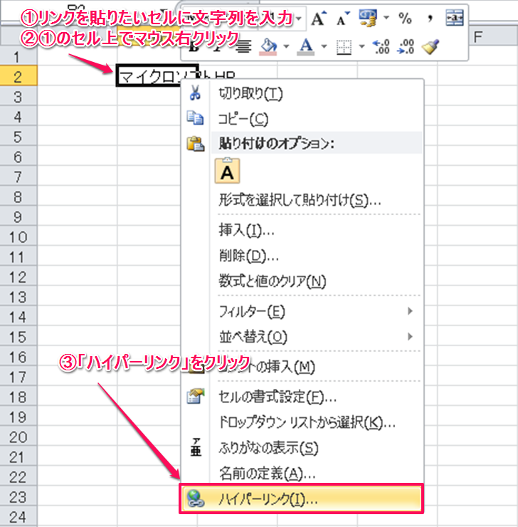 このジャンプ先をあらかじめ設定できる別の機能がExcelには用意されており、それはハイパーリンク機能です。