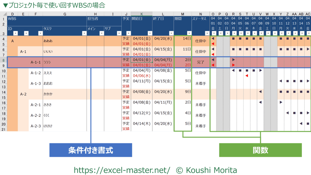 ※ベースの集計表を複製し、別条件のものを作成時 - WBS等の管理ツール