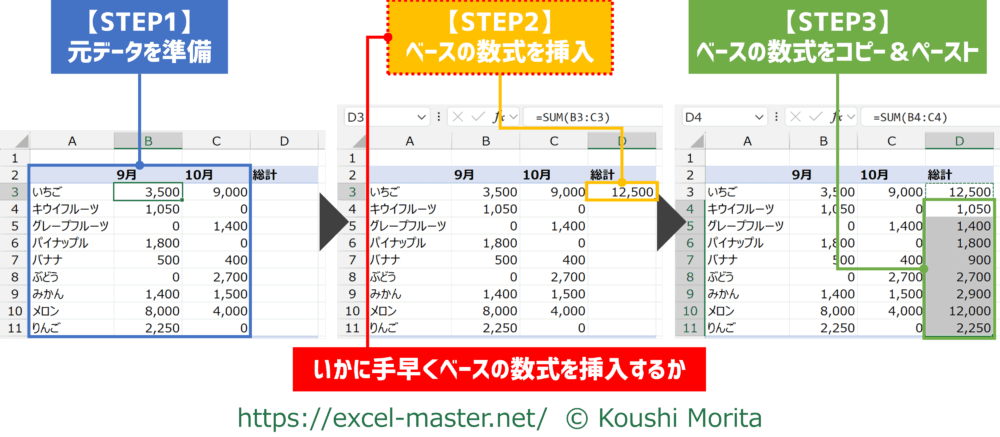 関数を活用する際の大枠の流れは3ステップあり、実務の作業効率を上げるには、次の2つのアプローチが重要でした。