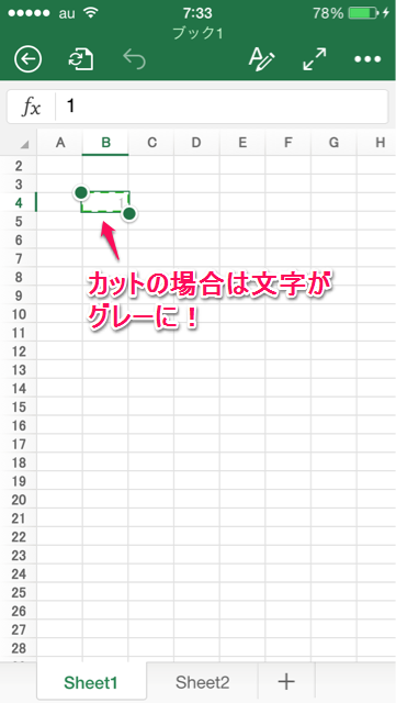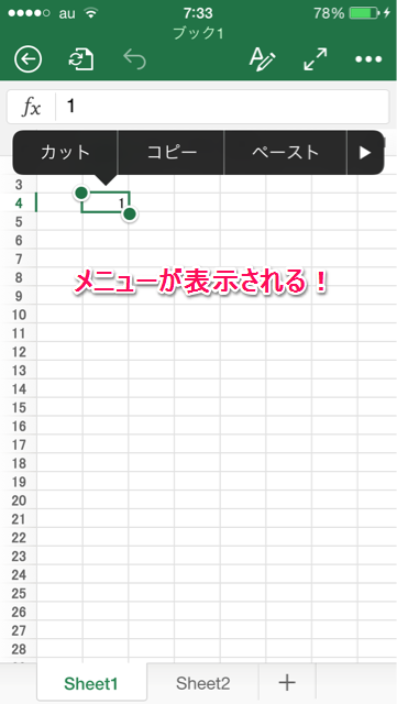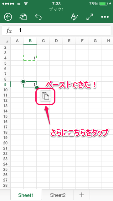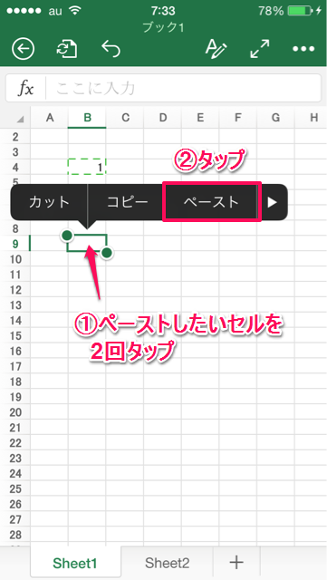1. ペースト先のセルを2回タップ