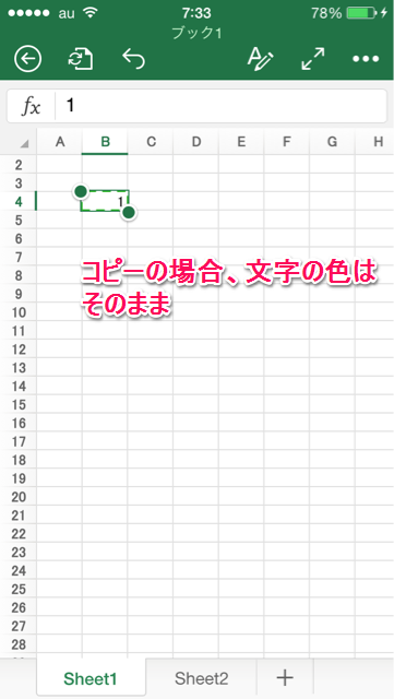1. コピー元のセルを2回タップ