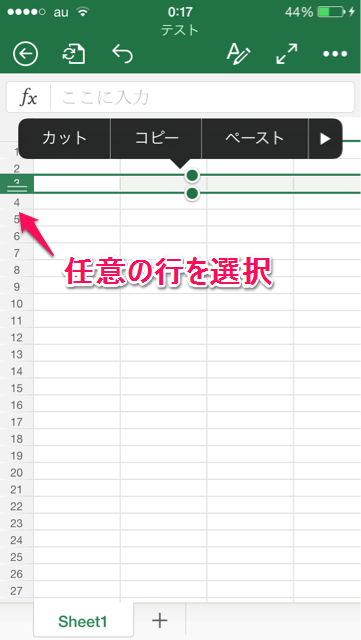 任意の行(ワークシートの左端の数字部分)をタップすれば選択できます。
