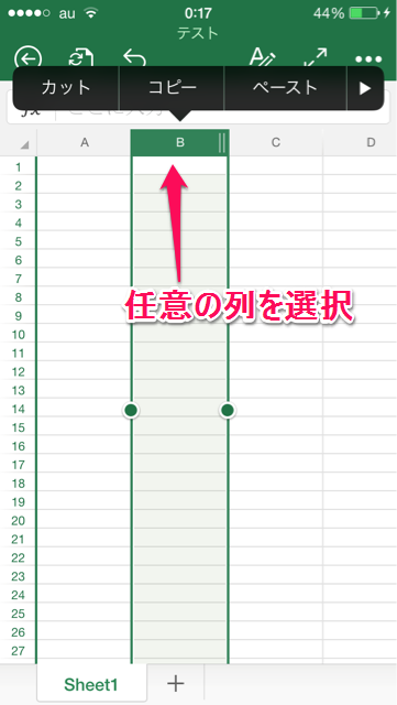 任意の列(ワークシートの上端のアルファベット部分)をタップすれば選択できます。