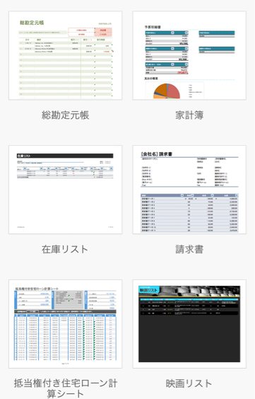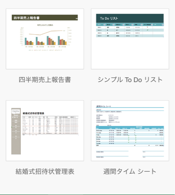 テンプレートが豊富にあるので、まずは既存のものから探し、適当なものがない場合に「新しい白紙のブック」を開いて作成を進めるのが効率的だと思います。