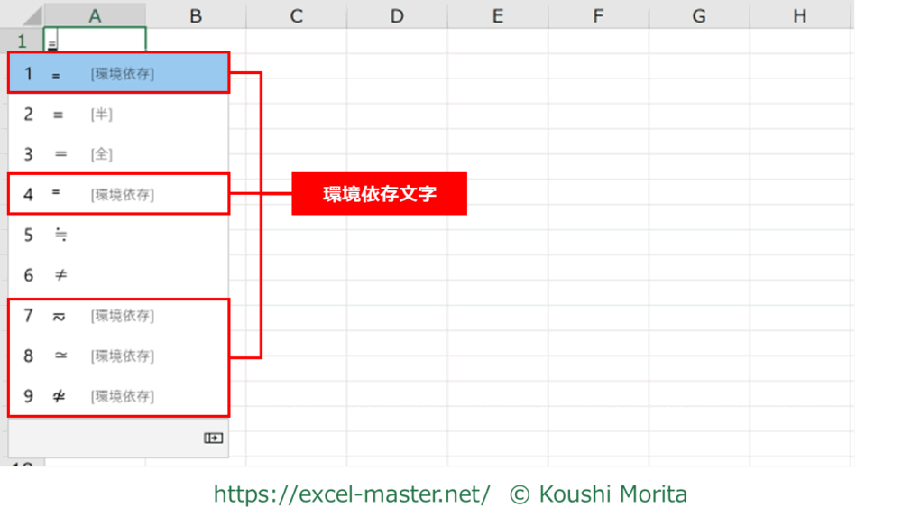 環境依存文字とは、文字を変換時、次のように「環境依存」と表示される文字のことです。