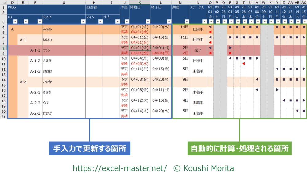 こうした表は、リアルタイムに人とやり取りしながら更新する管理用のツールであることが多いです。(WBS等)