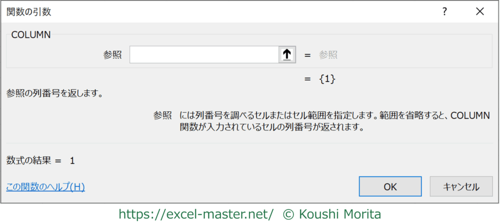 | 参照 | - | 参照 | 列番号を調べたいセルを指定します。 |