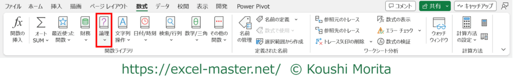 あくまで参考情報となりますが、IFERRORはリボン「数式」タブの関数ライブラリの「論理」に分類されています。