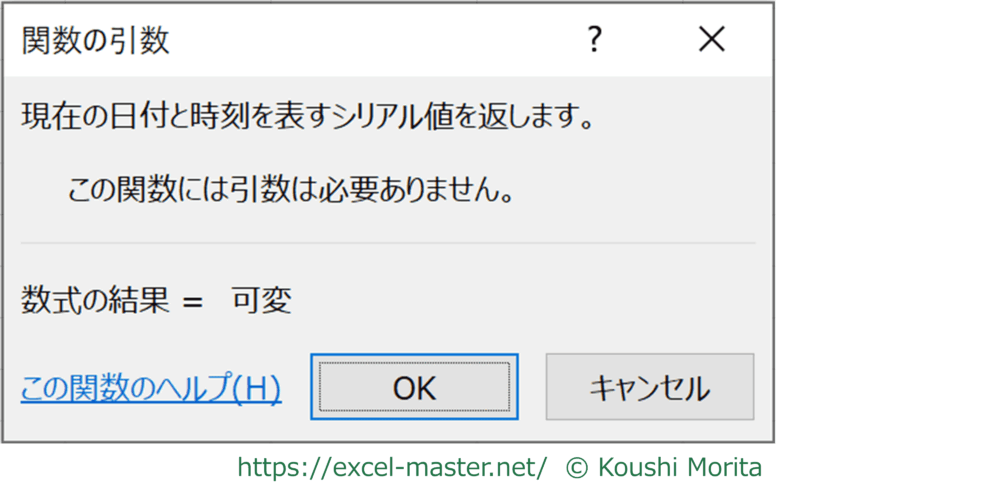 NOWを使うことで、現在の日付+時刻(シリアル値)を自動で取得できます。