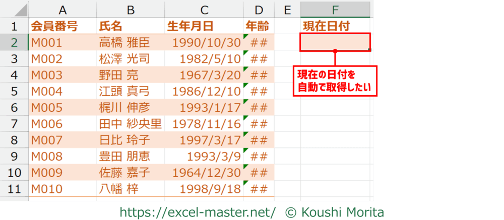その場合は、関数の「TODAY」を活用すると良いですよ!