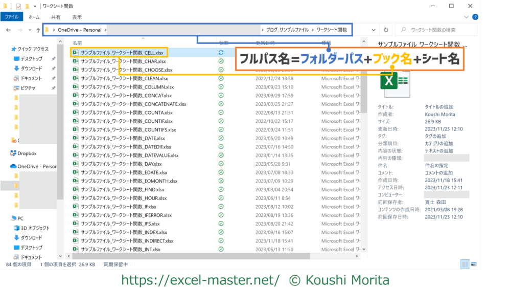 ちなみに、フルパス名のうち、シート名以外はエクスプローラー側で確認できます。