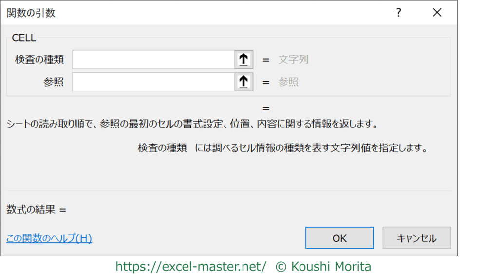 CELLで対象セルの情報を取得するイメージを、引数「検査の種類」のパターン別にまとめました。