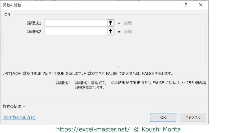 =OR(論理式1,[論理式2],…)