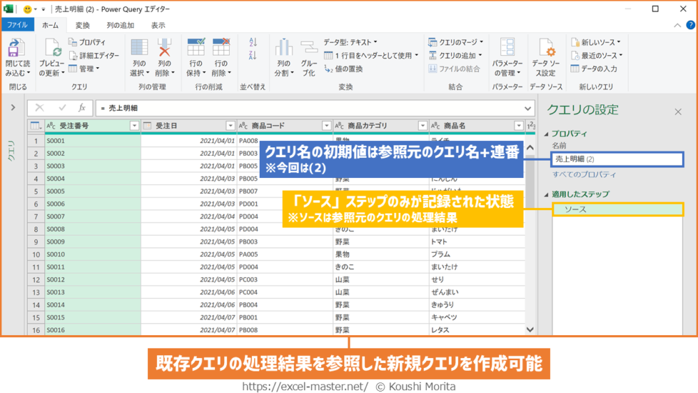 参照とは、任意のクエリの処理結果を参照した新規クエリを作成することを指します。
