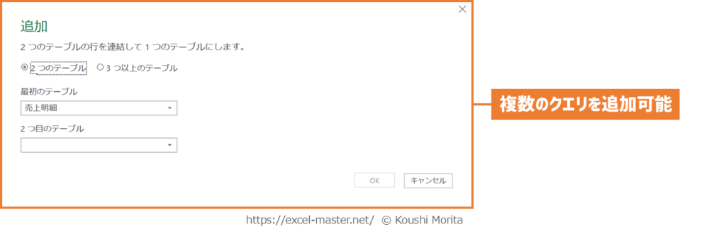 「クエリの追加」コマンドの詳細は、以下の記事をご参照ください。