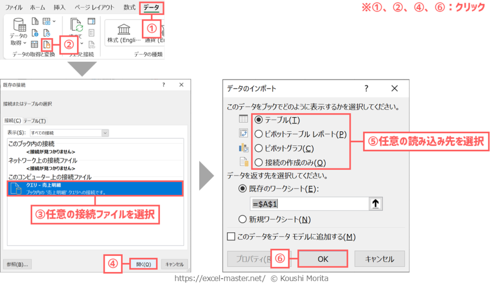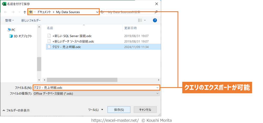 クエリ単独の情報を保存する、あるいは別ブックへインポートとしたい場合に活用しましょう。