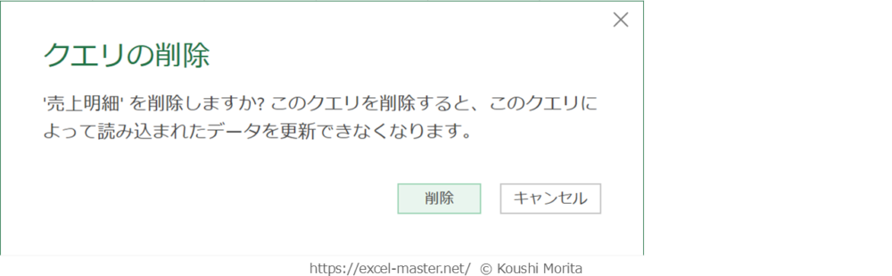 ‘テーブル名’を削除しますか?このクエリを削除すると、このクエリによって読み込まれたデータを更新できなくなります。