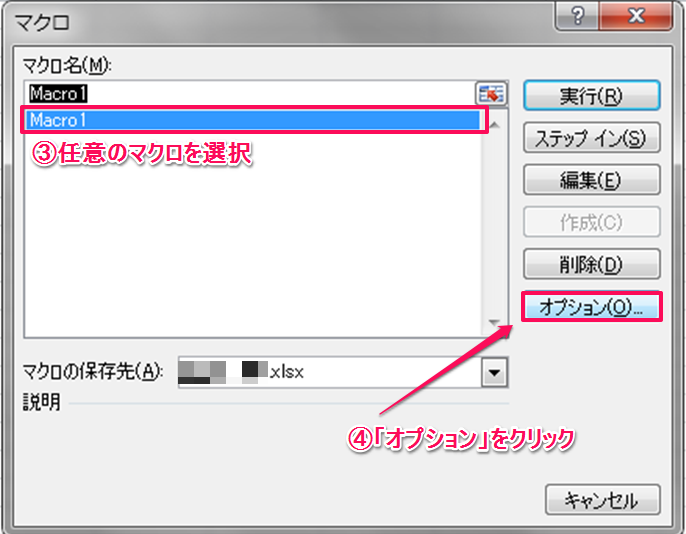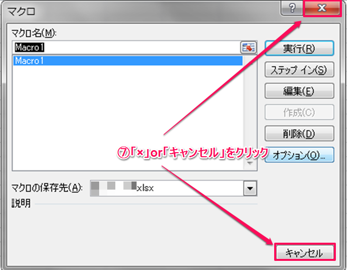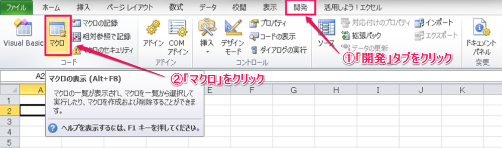 手順1・2は[Alt]+[F8]のショートカットキーでも可です。