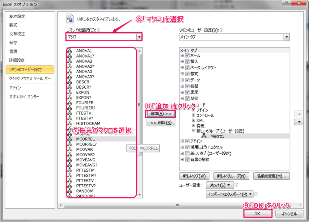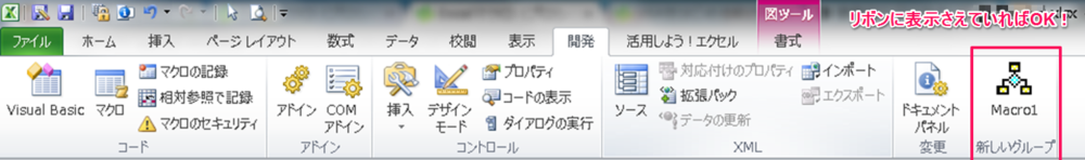 リボンへの設定は最初は設定に地味に手順がかかりますが、1回設定してしまえば、2回目以降のマクロの実行がかなり楽になります。