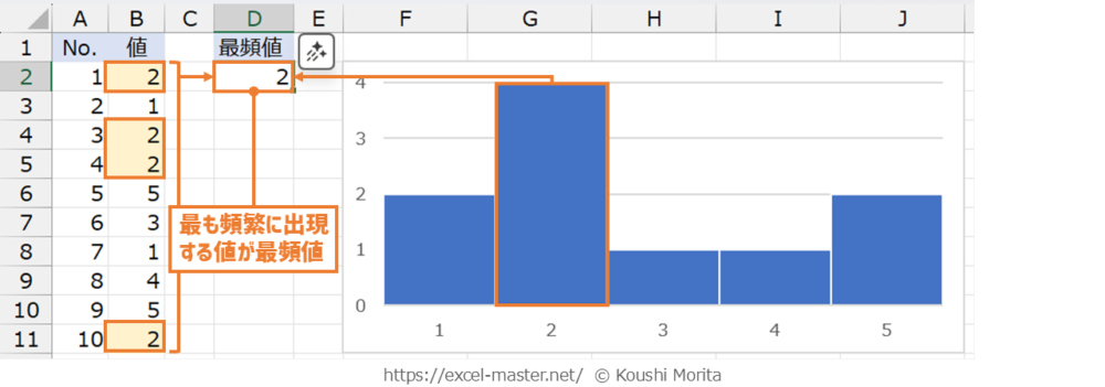 必要に応じ、MicrosoftサポートのMODE関数の記事もご参照ください。