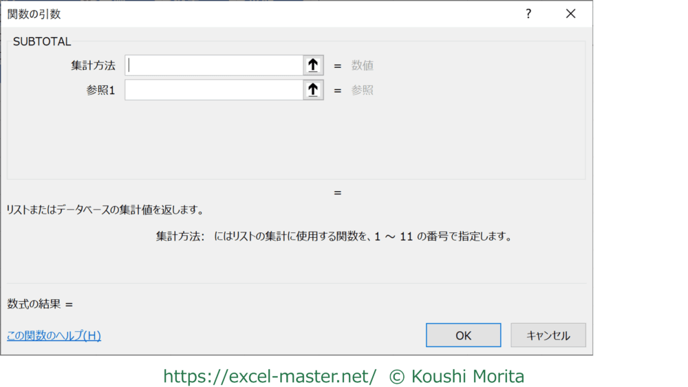 =SUBTOTAL(集計方法,参照1,[参照2],…)