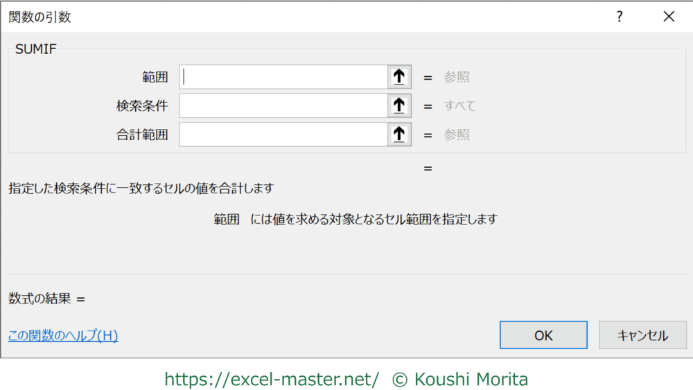 | 検索条件 | ○ | すべて | 「範囲」内のどのセルを計算対象にするかの条件(値やセル番地など)を指定します。 |