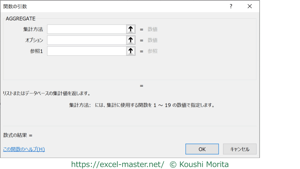 | 3 | 非表示の行、エラー値、入れ子になっているSUBTOTAL関数およびAGGREGATE関数を無視します |