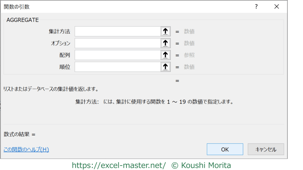 =AGGREGATE(集計方法,オプション,配列,順位)