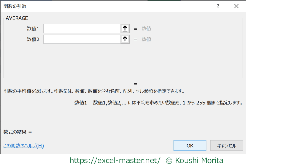 =AVERAGE(数値1,[数値2],…)