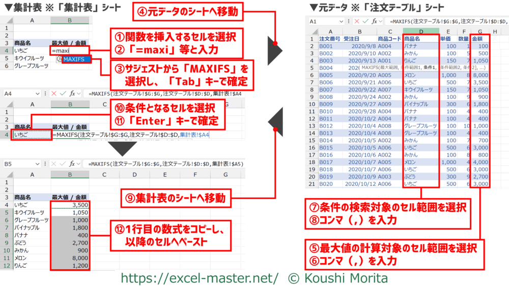 ○○別の「最大値」を集計する場合は「MAXIFS」が有効