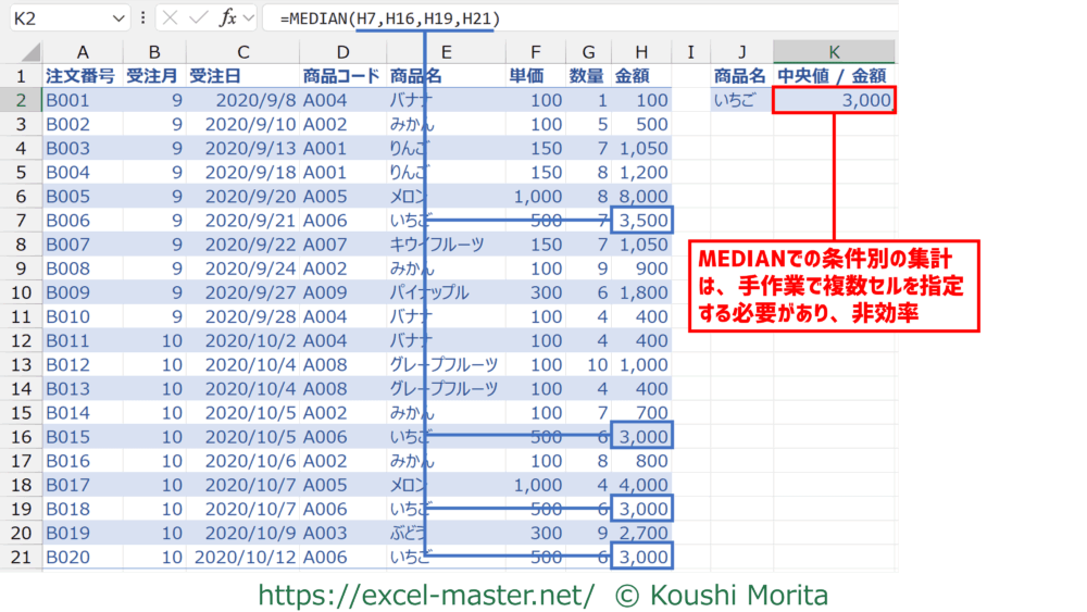 ちなみに、複数条件の数式の意味は次の通りです(例:MEDIAN)。