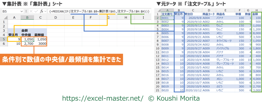 MEDIAN・MODE+IF(配列数式)の組み合わせテクニックは、条件別の中央値/最頻値の集計に役立ちます。