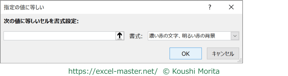 この条件を選択時に起動する「指定の値に等しい」ダイアログもオーソドックスな構成です。
