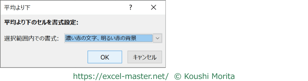 この条件を選択時に起動する「平均より下」ダイアログは以下の通りです。