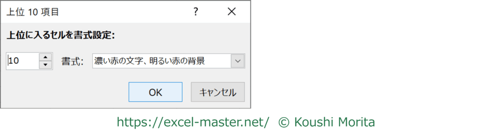 なお、条件名に「10」とありますが、この数値は「上位10項目」ダイアログにて変更可能です。