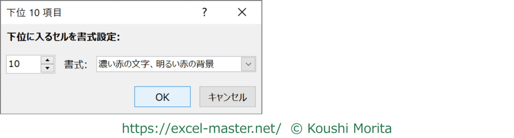 なお、条件名に「10」とありますが、この数値は「下位10項目」ダイアログにて変更可能です。