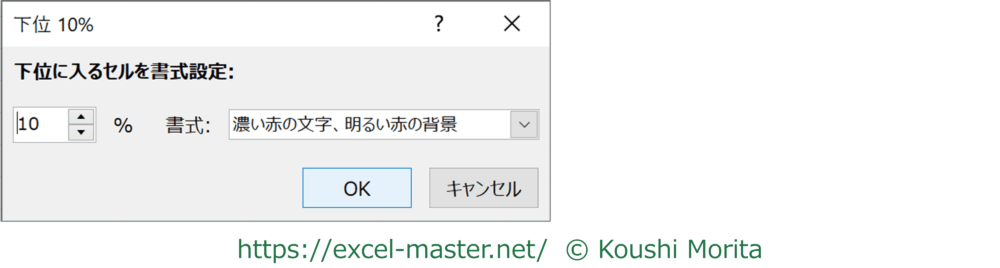 なお、条件名に「10」とありますが、この数値は「下位10%」ダイアログにて変更可能です。
