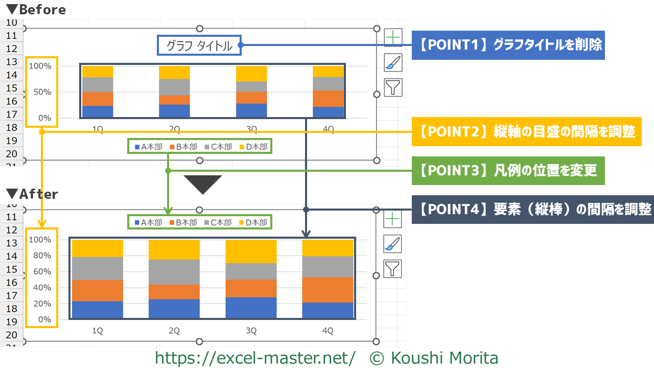 100%積み上げ縦棒グラフを見やすくする4つのポイント