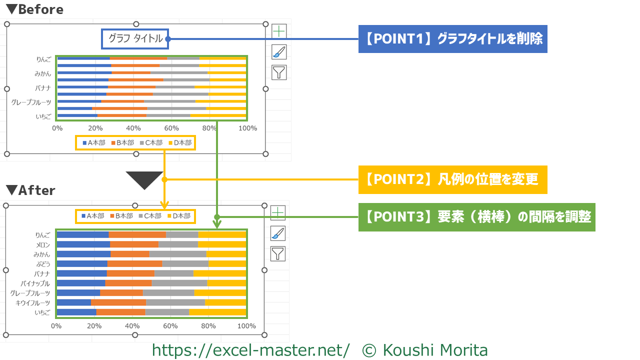 100%積み上げ横棒グラフを見やすくする4つのポイント