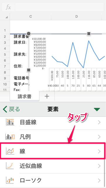 6. 「線」をタップ