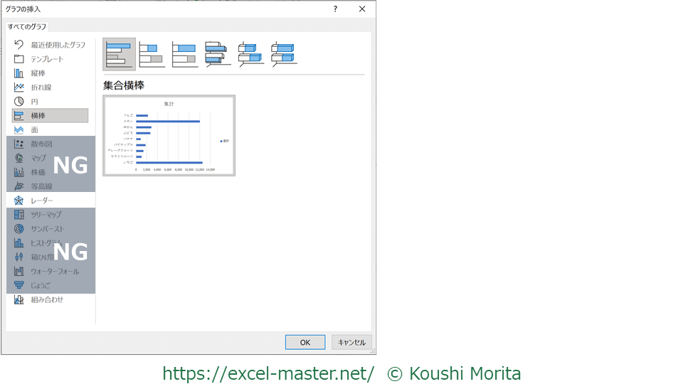 ※今回は「集合横棒」を選択 - 「OK」をクリック