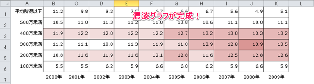 今回はこの濃淡グラフの作成方法について解説していきます。