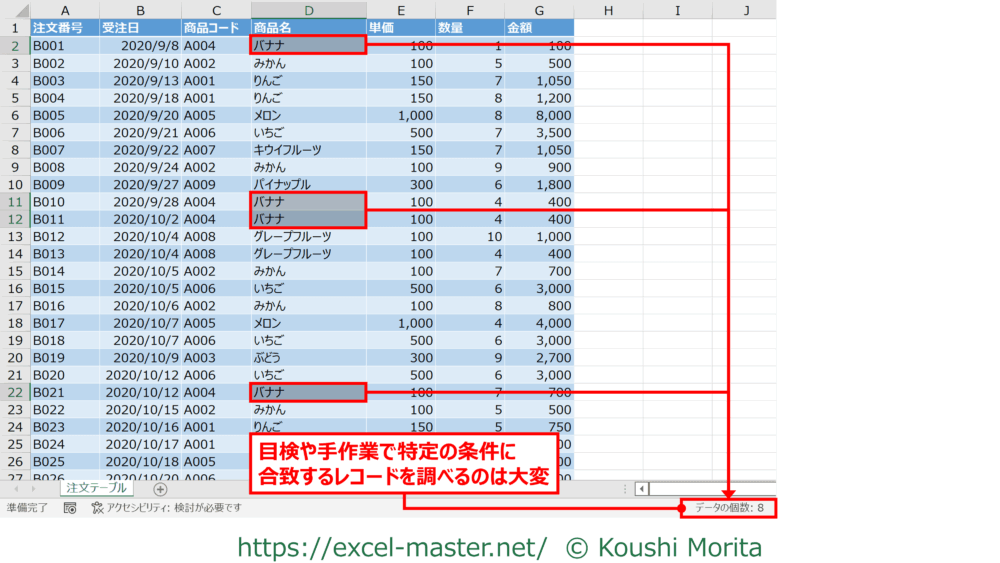 表データから、特定の条件に合致するレコードを探すのを目検でやって苦労したことはありませんか?