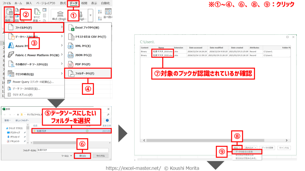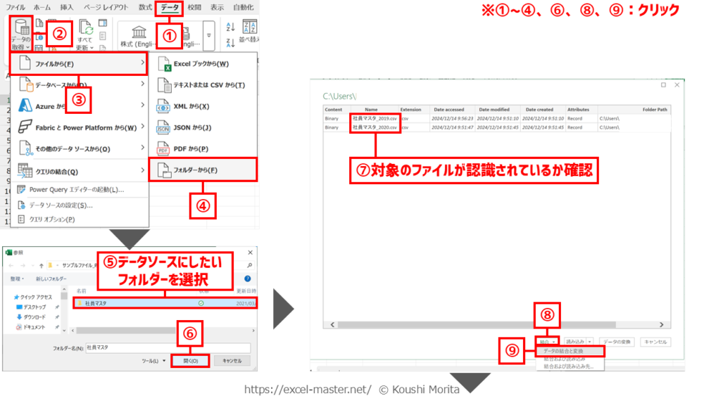 解説動画:【パワークエリ】フォルダーを対象としたデータインポート手順 - フォルダー内の複数データ(シート/テ …