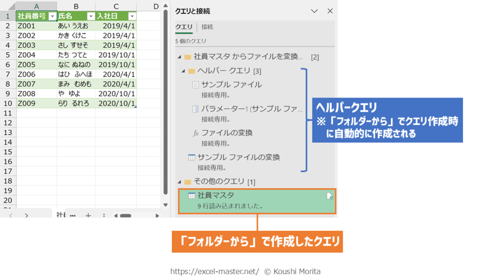 【参考】「フォルダーから」でクエリ作成時、ヘルパークエリが自動生成される