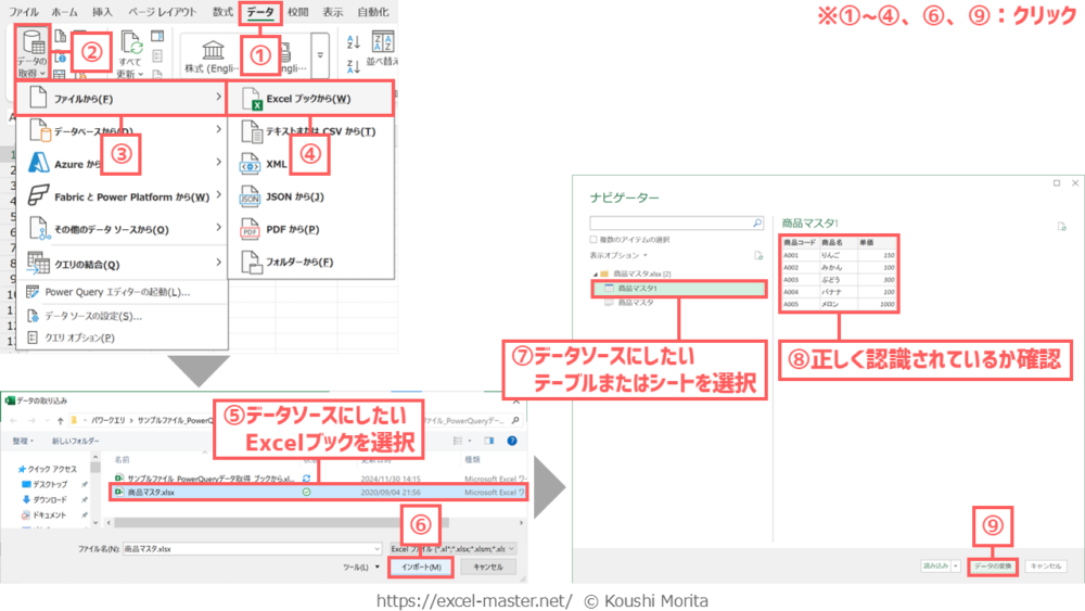 「Excelブックから」コマンドとは、別ブックのテーブルやシートのデータを取得する機能
