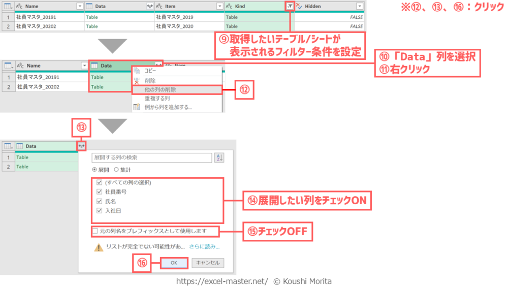 手順⑩は、「Data」列以外に残したい列があれば、その列も選択すること。