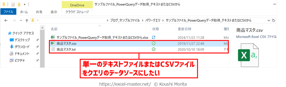 よって、テキスト/CSVファイルは同じテキストデータのため、パワークエリでデータ取得する際に用いるコマンドが同じなわけです。