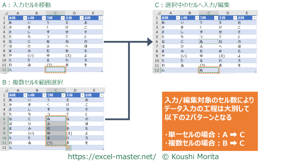 C:セルの入力/編集に役立つショートカットキー